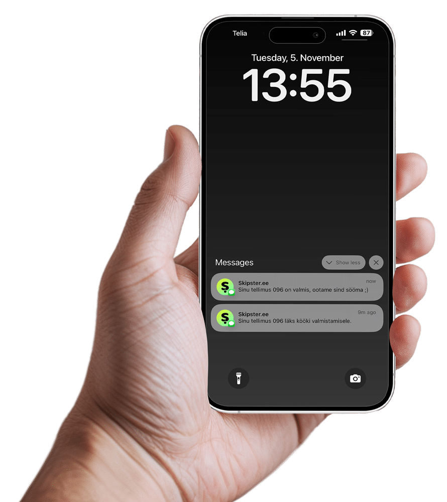 Skipster annab kliendile valiku ja vabaduse. Mida teha ooteajal on igaühe enda otsus. Meie SMS teavitus garanteerib, et klient saab tellimuse kätte õigeaegselt ning värskelt.